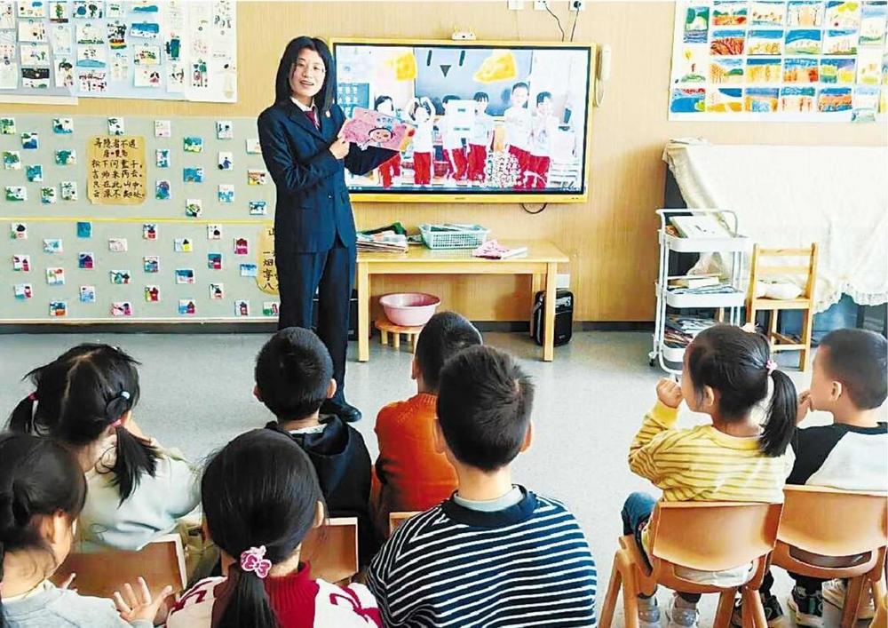 11月19日,平?jīng)鍪袡z察院第一檢察部干警帶著“萌娃普法繪本課件”及宣傳資料走進(jìn)平?jīng)鍪杏變簣@,以兒童易懂、感興趣的方式開展法治啟蒙活動。 平?jīng)鍪兴痉ň止﹫D