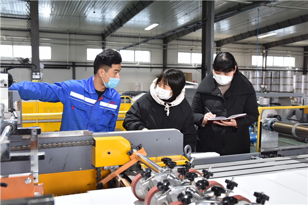 為切實幫助復工復產(chǎn)企業(yè)解決實際困難,安徽省滁州市南譙區(qū)紀委監(jiān)委女干部們組成“巾幗服務(wù)隊”,深入企業(yè)生產(chǎn)加工車間,開展調(diào)研走訪,跟進督促政策落實。(安徽省滁州市南譙區(qū)紀委監(jiān)委 孫煒 攝)