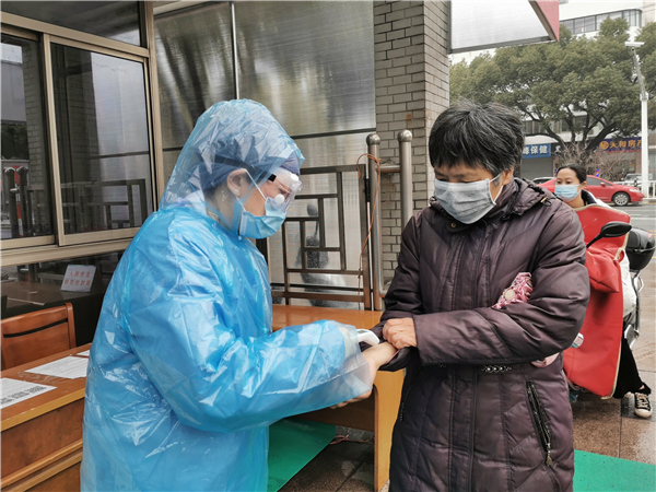 江蘇省常熟市第五人民醫(yī)院監(jiān)察室主任林潔已離開臨床崗位很多年,疫情發(fā)生后她選擇在一線,在發(fā)熱病人預檢分診處,守好第一道關(guān)口。(江蘇省常熟市紀委監(jiān)委 顧薇 攝)