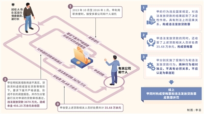 楊一龍:根據(jù)刑法第一百八十六條規(guī)定,違法發(fā)放貸款罪是指銀行或者其他金融機構(gòu)的工作人員違反國家規(guī)定發(fā)放貸款,數(shù)額巨大或者造成重大損失的行為。本案中,對于甲接受有關(guān)公司和個人請托,在明知其借款用途不真實、貸款資料虛假或冒名貸款等情況下仍審核通過貸款,明顯違反國家法律法規(guī)不存在爭議。但有觀點認為,甲審核通過貸款僅為發(fā)放貸款環(huán)節(jié)中的一個非決定性環(huán)節(jié),不應(yīng)讓甲承擔違法發(fā)放貸款的刑事責任,如果認定其構(gòu)成違法發(fā)放貸款罪,那么就應(yīng)追究貸款環(huán)節(jié)所有人的罪責。