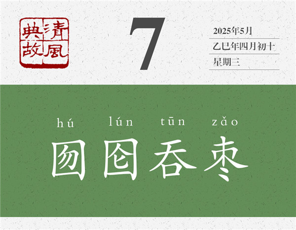 囫圇,就是完完整整的意思;把棗子完完整整地吞咽下去,就叫“囫圇吞棗”。我們常說(shuō)的“囫圇吞棗”,原來(lái)是一個(gè)傻子自作聰明的“發(fā)明”。雖然完完整整地吞下了一個(gè)棗子,但嚼也不嚼,連棗核也不用吐,連棗子什么味道也不用嘗,直接就咽下去了,這是聰明之舉嗎?吃東西為什么要咀嚼,既是為了品嘗滋味、享受過(guò)程,也是為了更好地消化吸收、獲取營(yíng)養(yǎng)。后世即以“囫圇吞棗”為典,比喻學(xué)習(xí)或借鑒過(guò)程中的死記硬背、照本宣科現(xiàn)象??此茡?jù)為己有了,實(shí)則只是走了個(gè)過(guò)場(chǎng)而已。朱自清《論詩(shī)學(xué)門徑》:“一個(gè)高中文科的學(xué)生,與其囫圇吞棗或走馬看花地讀十部詩(shī)集,不如仔仔細(xì)細(xì)地背誦三百首詩(shī)。”