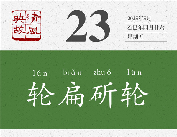 后世以“輪扁斫輪”為典,形容一個人經(jīng)驗豐富,技藝高超;也用來強調(diào)直接經(jīng)驗或?qū)嵺`經(jīng)驗至關(guān)重要,通過讀書或間接學習無法獲得。黃庭堅詩《戲題小雀捕飛蟲畫扇》:“丹青妙處不可傳,輪扁斫輪如此用。”