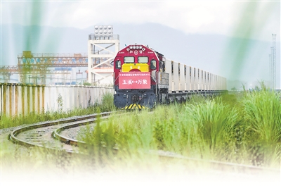 8月23日,前往老撾萬象的國(guó)際貨物列車駛出中老鐵路中國(guó)玉溪研和站。當(dāng)日,中老鐵路國(guó)際貨物列車(玉溪—萬象)實(shí)現(xiàn)雙向開行。新華社記者 陳欣波 攝