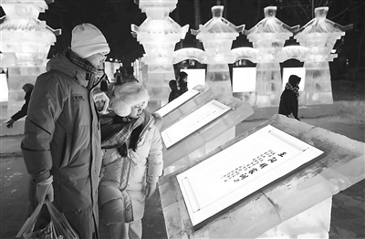 黑龍江省哈爾濱市依托冰雪文化資源創(chuàng)建廉潔品牌,打造含有清廉元素的冰雪景觀園,讓市民游客在賞冰樂雪的同時受到廉潔文化的浸潤。圖為市民在冰雪景觀前駐足。 劉萌 攝