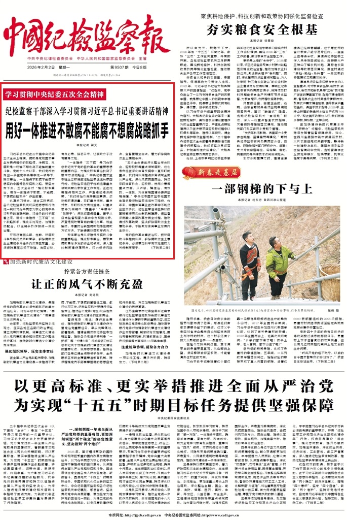 《中國(guó)紀(jì)檢監(jiān)察報(bào)》2月2日第1版
