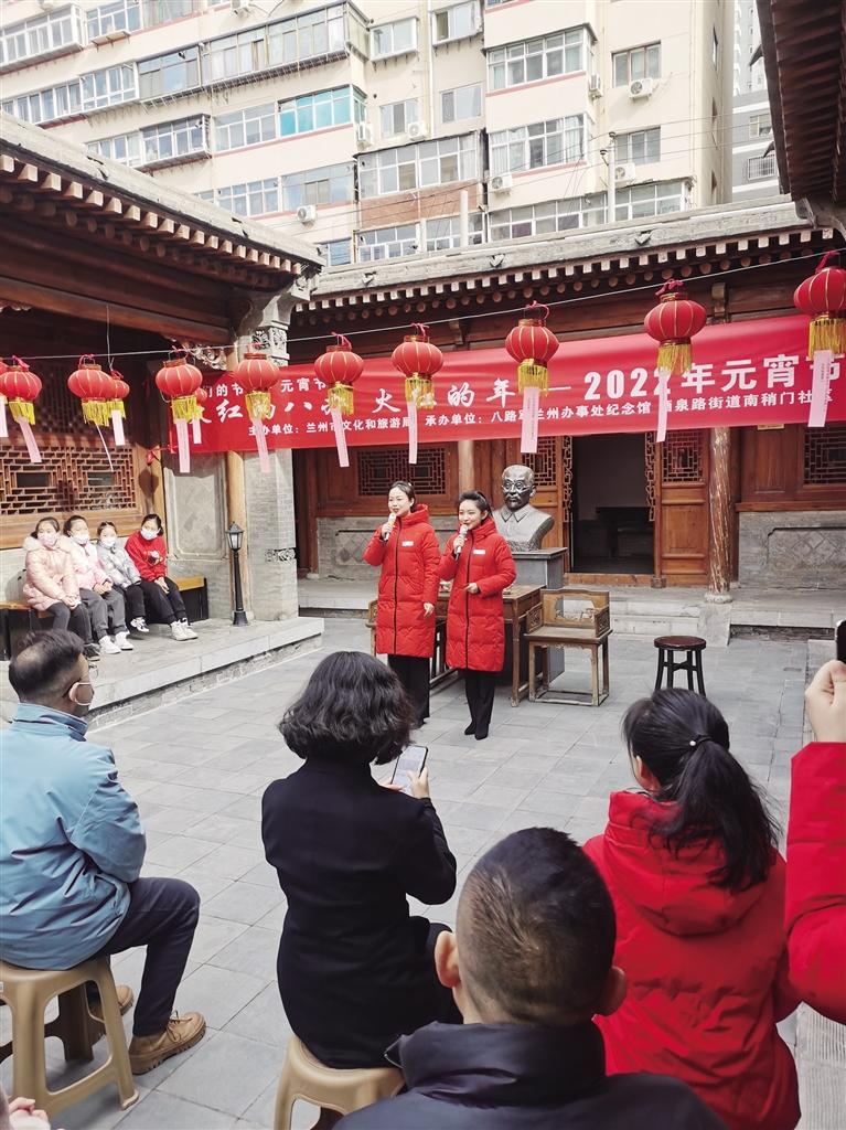 2月14日,在喜迎元宵佳節(jié)之際,由蘭州市文化和旅游局主辦的“火紅的八辦火紅的年 民族團(tuán)結(jié)一家親”——2022年元宵節(jié)主題活動在位于酒泉路的八路軍蘭州辦事處紀(jì)念館舉行。來自酒泉路街道南稍門社區(qū)、南關(guān)民族風(fēng)味一條街的市民代表與蘭州八辦工作人員及紅色小志愿者近百余人齊聚一堂,共同“憶黨史、話冬奧、猜燈謎、慶元宵、唱紅歌”。