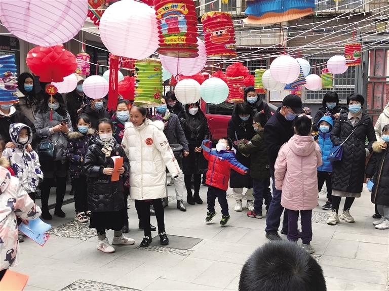 2月14日,酒泉路街道張家園社區(qū)聯(lián)合市、區(qū)駐守干部和社工委單位,秦絲韻葫蘆絲學(xué)校、金昌南路郵儲銀行等單位開展猜燈謎鬧元宵活動。