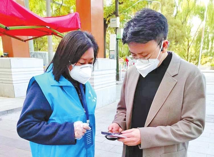 薩仁娜認(rèn)真查驗(yàn)小區(qū)進(jìn)出人員健康碼