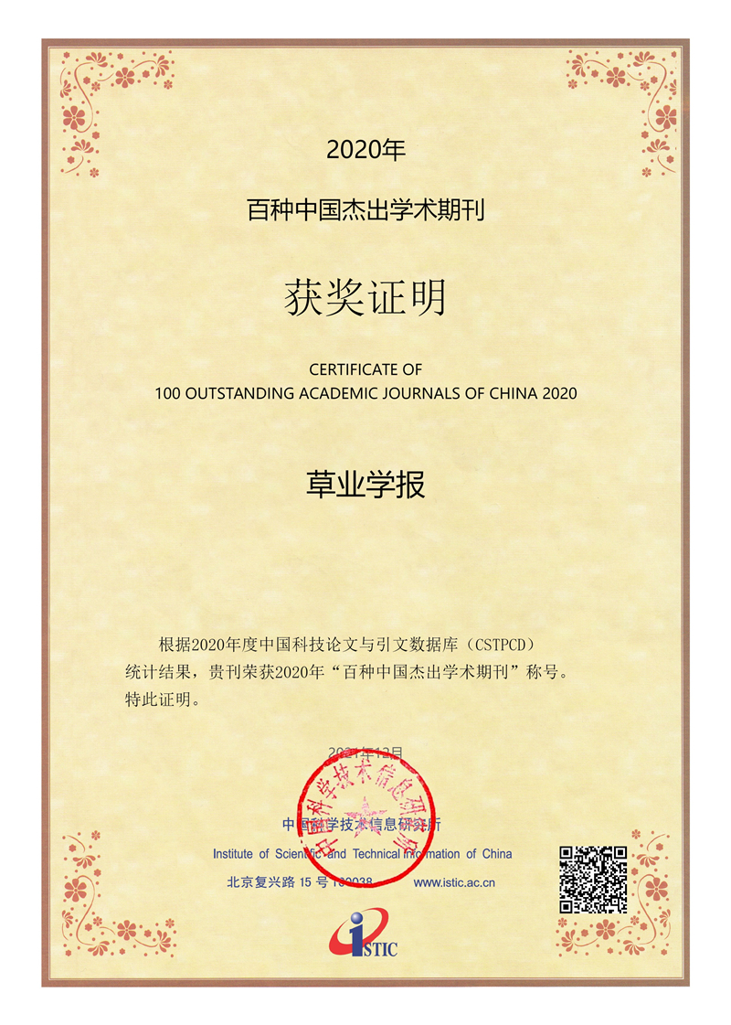 12月29日,中國科學技術(shù)信息研究所發(fā)布《2022年中國科技論文統(tǒng)計報告》,并評選出“2021年度中國百種杰出學術(shù)期刊”,其中甘肅省2種,分別是:中國草原協(xié)會、蘭州大學草地農(nóng)業(yè)科技學院主辦的《草業(yè)學報》,中科院寒旱所主辦的《高原氣象》。