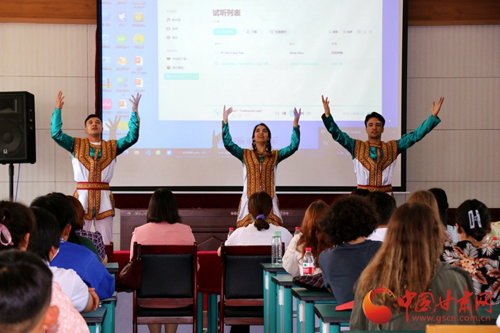 活動(dòng)中,蘭州交通大學(xué)附屬中學(xué)組織七、八年級(jí)用英語(yǔ)表演了詩(shī)歌朗誦、話劇、合唱、獨(dú)唱等節(jié)目,來(lái)華留學(xué)生代表獻(xiàn)上了土庫(kù)曼斯坦傳統(tǒng)舞蹈表演,現(xiàn)場(chǎng)氣氛熱烈。