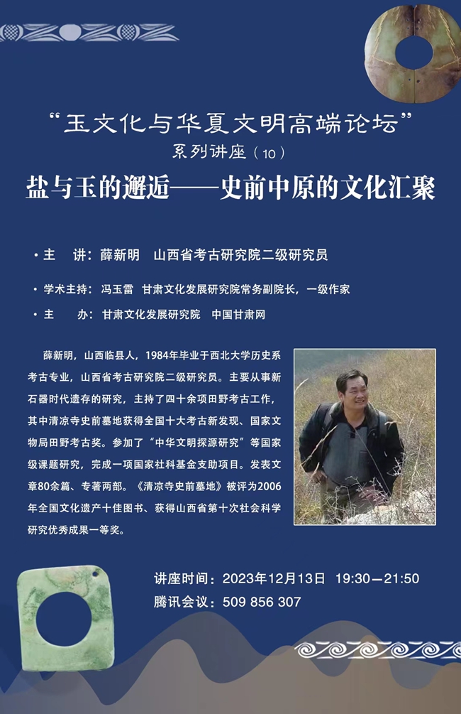 12月13日晚,山西省考古研究院二級研究員薛新明在線做了題為《玉器所見齊家文化時(shí)期甘青地區(qū)與關(guān)中地區(qū)的交流互動(dòng)》的學(xué)術(shù)報(bào)告。這是甘肅文化發(fā)展研究院主辦的“玉文化與華夏文明高端論壇”系列講作活動(dòng)第10講,也是今年的壓軸之講。