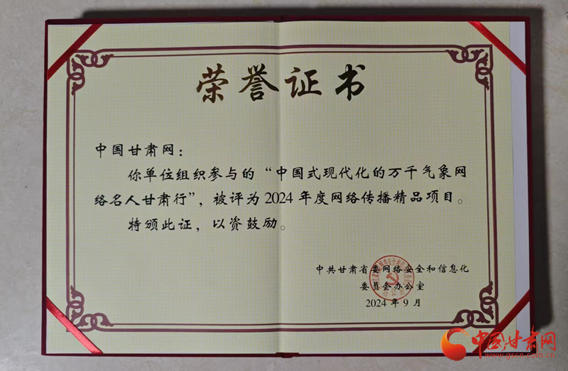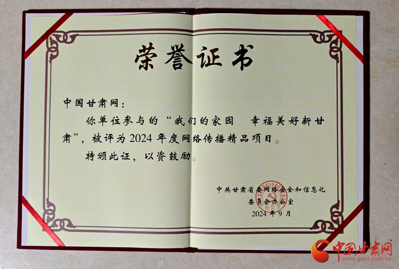 同時,中國甘肅網(wǎng)參與的“我們的家園幸福美好新甘肅”和“中國式現(xiàn)代化的萬千氣象網(wǎng)絡(luò)名人甘肅行”兩個項目被評為2024年度網(wǎng)絡(luò)傳播精品項目。