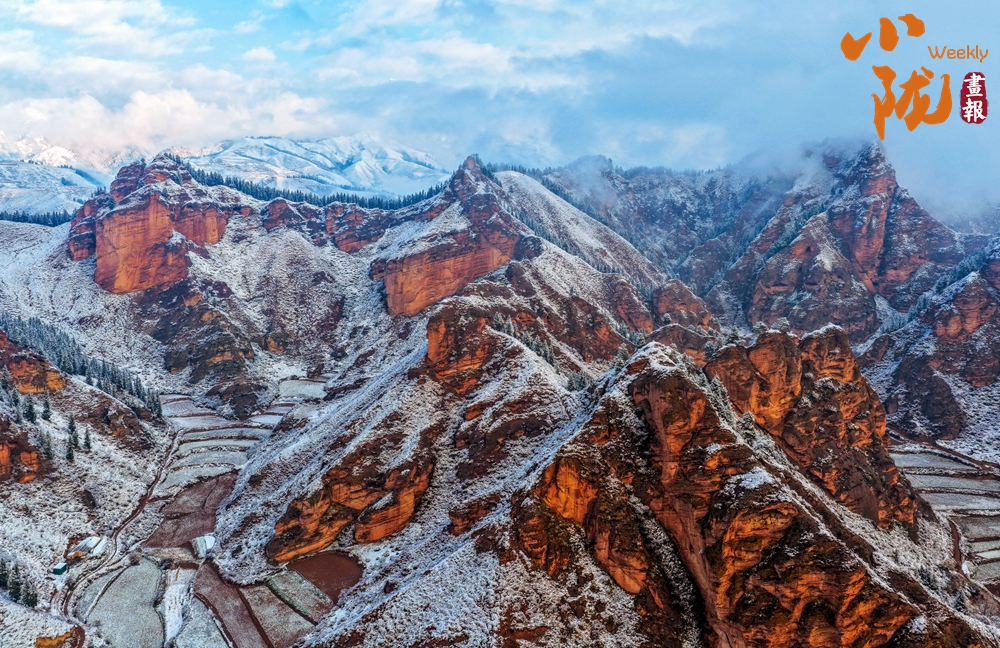 雪落天祝,本康丹霞展露出別樣景致。赭紅巖壁披覆皚皚素雪,熾烈地貌與清冽冬意在此相逢,暈染出一片紅白交織的視覺交響。