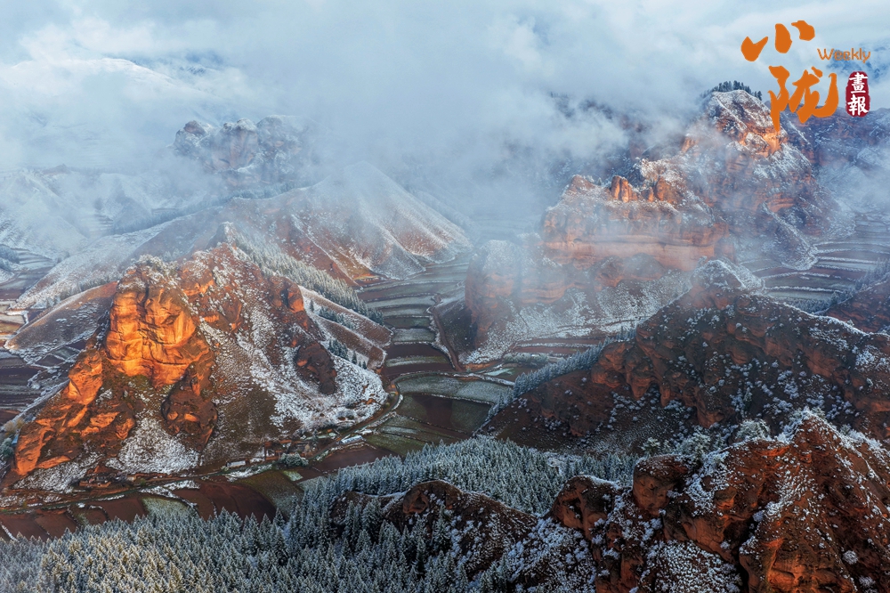 當(dāng)陽光漫灑,積雪映襯著巖層的斑斕紋理,山間霧氣如輕紗浮動(dòng),仿佛大地正以靜默完成一場(chǎng)季節(jié)的儀式。這片雪中丹霞,既存地質(zhì)之雄魄,亦添冬日的空靈詩意。