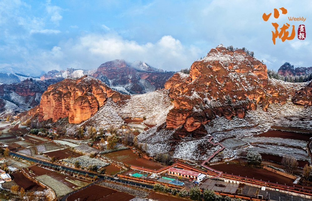 丹霞的漫山赤紅與覆雪的凈白相互襯托,積雪沿巖層紋理自然鋪展,勾畫出地貌歷經(jīng)風(fēng)霜的歲月痕跡;融雪處,一片片紅色巖體漸次顯露,猶如大地在雪被之下,悄然翻開一部古老而熾熱的地質(zhì)史冊(cè)。