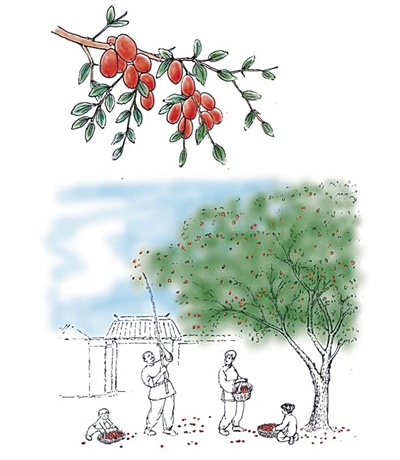 《果兒小典》是一本讀起來(lái)輕松,又別有一番滋味的書(shū)。隨著人們生活水平的提高,水果干果店鋪隨處可見(jiàn),店里的果子更是天南海北,無(wú)所不有。南北半球的水果干果薈萃一堂,讓人產(chǎn)生了一種果樹(shù)永不休息、隨手可得的錯(cuò)覺(jué)。什么才是果子帶給我們的正常感覺(jué)呢?那應(yīng)該是一同經(jīng)歷光陰荏苒,春華秋實(shí),經(jīng)過(guò)漫長(zhǎng)等待之后,還要付出體力才能達(dá)成的相逢,以及由此帶來(lái)的喜悅。在憂思家國(guó)的杜甫筆下,是“庭前八月梨棗熟,一日上樹(shù)能千回”,更帶著一種少年輕狂的沖動(dòng)和興奮??梢哉f(shuō),果子正因?yàn)榧耐兄覀兊那楦?,而變得別有滋味。