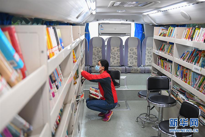 3月26日,在長(zhǎng)沙岳麓區(qū)石嶺塘社區(qū),市民在流動(dòng)圖書館里挑選書籍。 近日,在做好疫情防控工作的同時(shí),長(zhǎng)沙流動(dòng)圖書館恢復(fù)運(yùn)營(yíng)。長(zhǎng)沙流動(dòng)圖書館是長(zhǎng)沙圖書館的總分館流動(dòng)服務(wù)項(xiàng)目之一,以大巴車為載體,每月定期到社區(qū)、學(xué)校、企業(yè)、工地等區(qū)域,為市民提供閱覽、咨詢、辦證、借書、還書等便捷化公共服務(wù)。 新華社記者 陳澤國(guó) 攝