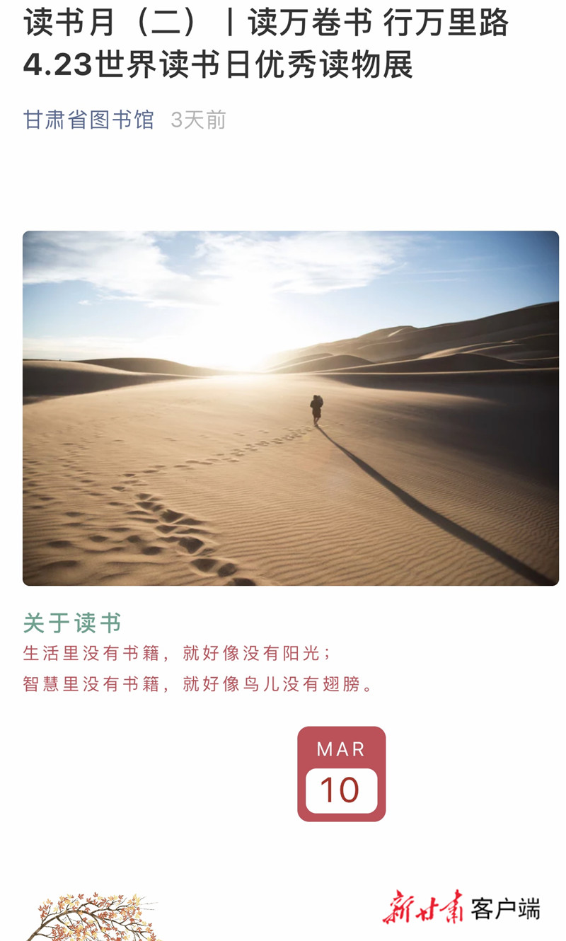 讓我們一起讀書(shū)吧!甘肅省圖書(shū)館推出線上讀書(shū)月系列活動(dòng)