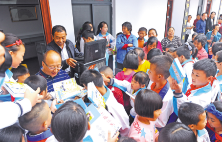 作家深入湖北谷城縣廟灘鎮(zhèn)黃畈村農(nóng)家書(shū)屋開(kāi)展圖書(shū)簽贈(zèng)導(dǎo)讀活動(dòng)。