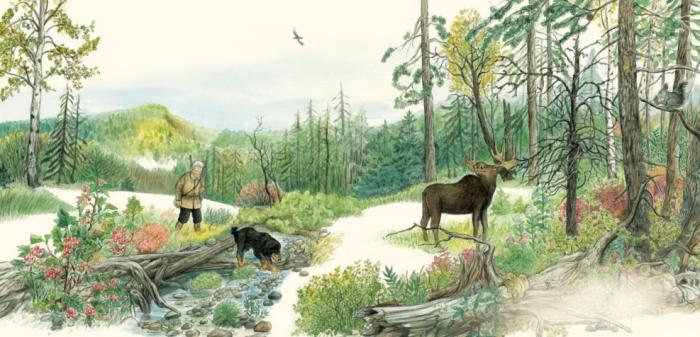 《鄂溫克的駝鹿》內(nèi)頁(yè)圖畫(huà),由女畫(huà)家九兒執(zhí)筆。接力出版社供圖
