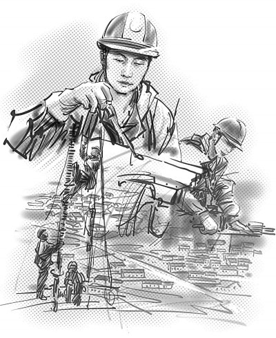 就個(gè)人條件而言,胡洪煒一米八的身高其實(shí)并不適合帶電作業(yè),但三年軍營(yíng)練就的結(jié)實(shí)精壯以及先天的敏捷機(jī)靈完美地補(bǔ)充了身高的短板。多年之后,閆旭東依然清晰地記得徒弟曾經(jīng)帶給他的震撼。帶電作業(yè)兩大危險(xiǎn),一是高空,一是帶電。軟梯是電力人得以騫翮遠(yuǎn)翥的依傍,可攀爬軟梯卻一度打濕了胡洪煒振翅欲飛的翅膀。新員工入職培訓(xùn)的訓(xùn)練場(chǎng)上,別人用一個(gè)月已經(jīng)熟練掌握了技巧,笨鳥胡洪煒卻剛剛及格。氣喘吁吁地爬到基塔的頂端,將自己蟄伏在離地面幾十米高的電線上,想像自己是一只俯瞰大地的鳥雀,一只暫時(shí)休整的雨燕,抑或是被印刷在音樂課本上的音符。音符在胡洪煒耳邊輕聲吟唱:我要飛得更高,更高!