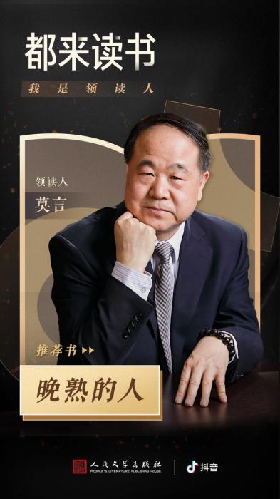 為了更好地利用短視頻與讀者交流,莫言這次還參與了由人民文學出版社和抖音聯(lián)合發(fā)起的#尋找晚熟的人話題,希望征集更多的“晚熟”故事。