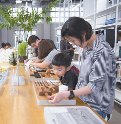 在泰國創(chuàng)意與設(shè)計中心圖書館,來訪者正在位于二層的材料體驗(yàn)區(qū)參觀。泰國創(chuàng)意與設(shè)計中心圖書館供圖
