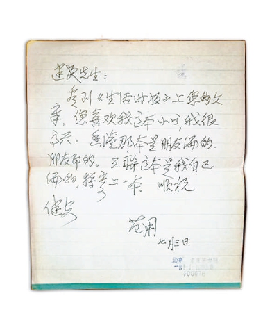 《生活時(shí)報(bào)》上的拙稿,是先在網(wǎng)上讀到,好幾天后才接到樣報(bào)的。正考慮著是否復(fù)印給先生(因怕給您添麻煩),便收到您的大札及三聯(lián)版的《我愛穆源》,喜不自勝。近幾天大暑,常常躺在席上翻讀《穆源》,很快又讀了一遍,雖似乎輕松但收益卻不少。我們最后留在生命記憶里的,不正是這些最純粹、率直的東西嗎?這也許正是它的價(jià)值,也許是人們復(fù)讀《穆源》的自然沖動(dòng)。再次致謝!