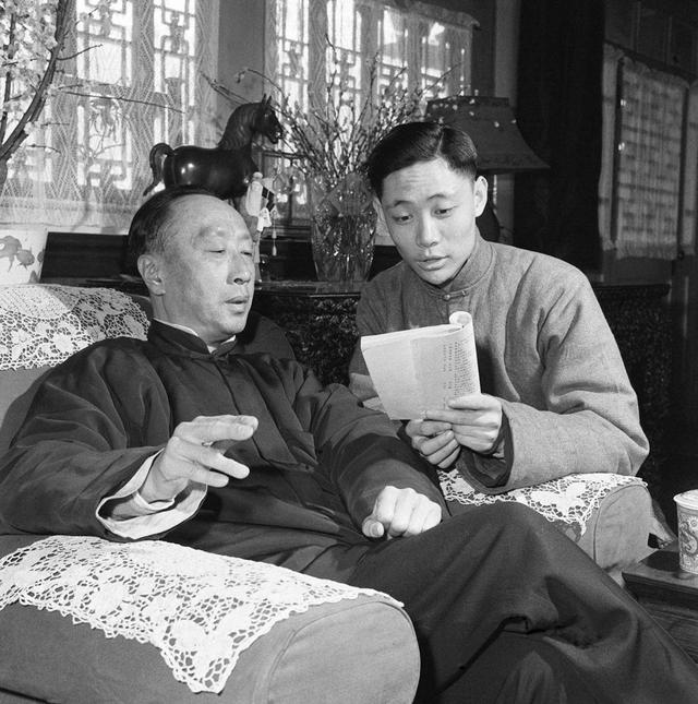 資料圖片:馬連良教徒弟掌握京劇唱腔(1962年3月攝) 新華社