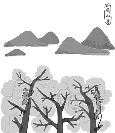 《猴兒與少年》中的“猴兒大學(xué)士三少爺”是王蒙貢獻(xiàn)給文壇的一個(gè)生動(dòng)有趣的藝術(shù)形象,從生物學(xué)、生態(tài)學(xué)、生命學(xué)的意義上,王蒙寫活了“猴兒性”。猴兒三少的伶俐機(jī)智、閃轉(zhuǎn)騰挪,自由自在自如自安自鬧自玩,不怕人、不服人、不討好于人的獨(dú)特“個(gè)性”,給人留下深刻印象,特別是對(duì)猴兒哥二叔耍猴兒、“三少爺照鏡子”的描寫,簡(jiǎn)直妙絕——左照右看,東抓西撓,前伸后縮,急躁狂亂,猴態(tài)百出。從耍猴兒的角度看,實(shí)在趣味盎然。
