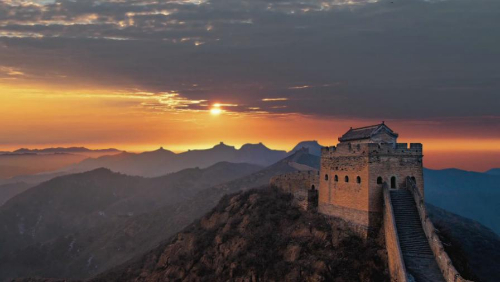 跨峻嶺,穿荒原,橫瀚海,經(jīng)絕壁,縱橫十萬(wàn)里。望不斷長(zhǎng)龍烽垛,雄關(guān)隘口,猶如玉帶明珠,點(diǎn)綴成江山錦繡。起伏奔騰,飛舞盤旋,長(zhǎng)城就是中國(guó)人給這個(gè)世界增添的偉大奇跡。