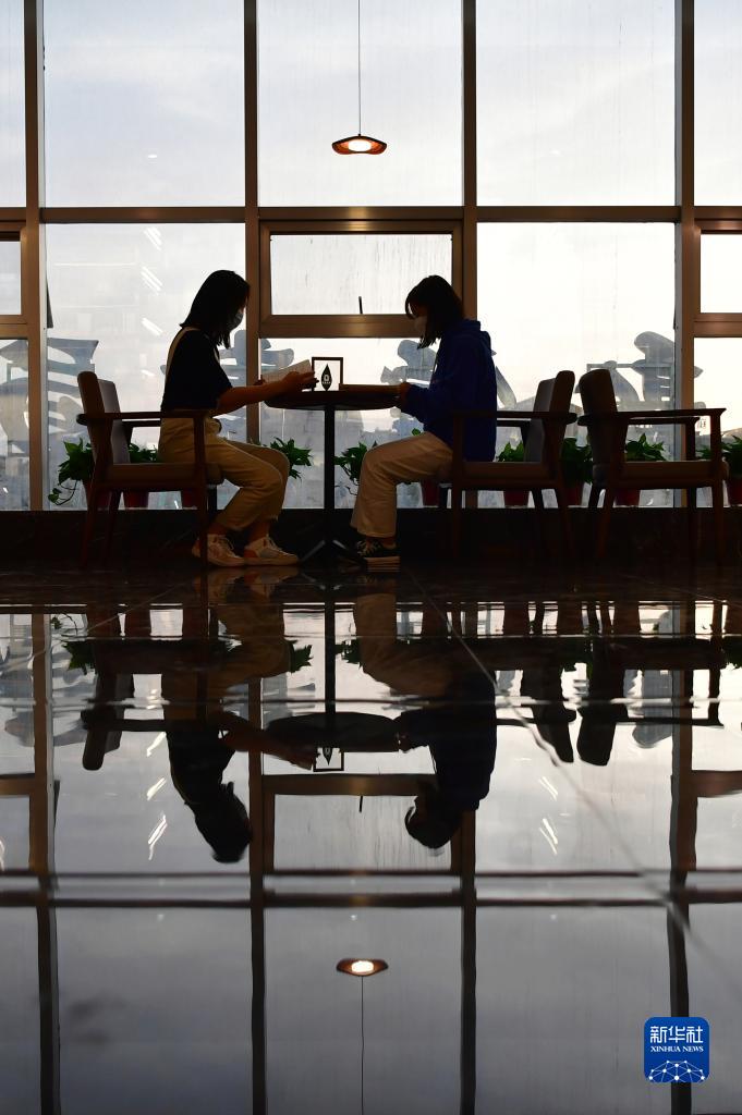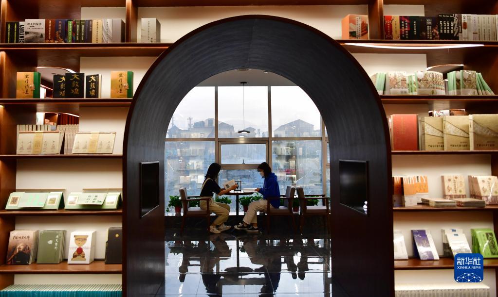 讀者在敦煌書(shū)局閱讀區(qū)看書(shū)(4月21日攝)。新華社記者 杜哲宇 攝