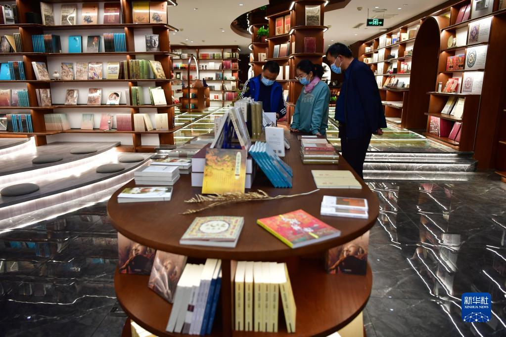讀者在敦煌書(shū)局挑選書(shū)籍(4月21日攝)。新華社記者 陳斌 攝