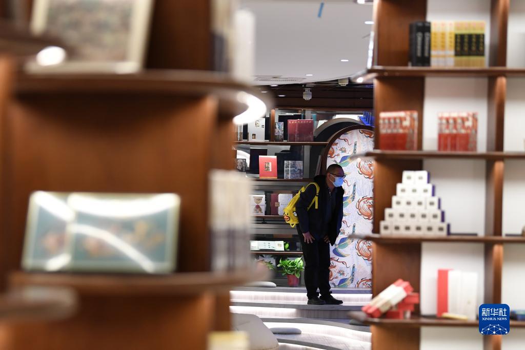 讀者從敦煌書(shū)局的書(shū)架旁走過(guò)(4月21日攝)。新華社記者 陳斌 攝