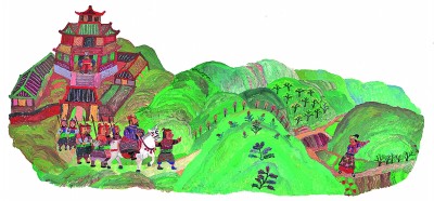 《桃花源的故事》中“便扶向路,處處志之”的場景。光明圖片