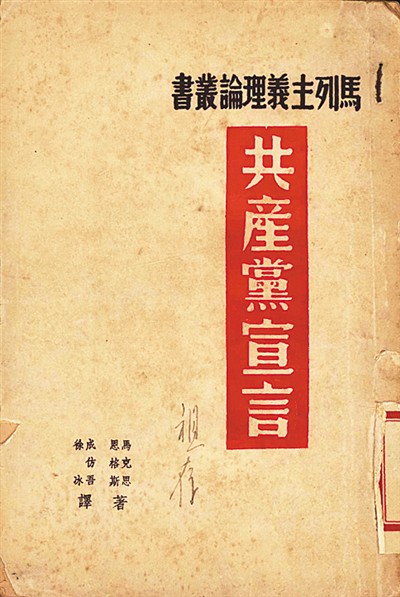 陜北公學(xué)首任校長(zhǎng)成仿吾曾在法國和德國學(xué)習(xí)馬克思主義理論,并受中共駐共產(chǎn)國際代表蔡和森委托,翻譯《共產(chǎn)黨宣言》。盡管這部譯稿遺失,卻奠定了他五譯《共產(chǎn)黨宣言》的基礎(chǔ)。人大圖書館收藏了其中3個(gè)刊發(fā)本,包括初印版。其中的二譯本,是受中共中央宣傳部委托,在解放區(qū)公開組織翻譯的第一個(gè)漢語全譯本??箲?zhàn)期間,該譯本是黨員干部的必讀書籍,也是陜北公學(xué)馬列課程的必備教材。