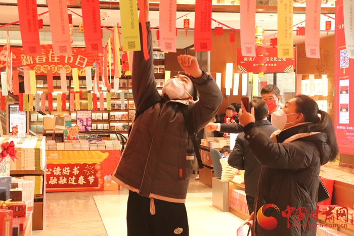 書店里,家長們饒有興致地在謎題下駐足思考,眾多青少年不停地討論著,大家競相猜著燈謎,猜中后兌換電子購書券。活動共設(shè)燈謎一萬條,謎語涵蓋了黨史知識、黨的二十大等內(nèi)容,讓家長和青少年在參與活動的同時汲取知識。除了猜燈謎,畫畫、剪紙、投壺游戲、故事會、制做手工燈籠、制作元宵等形式多樣的活動,讓讀者在新華書店度過了一個熱熱鬧鬧的元宵佳節(jié)。