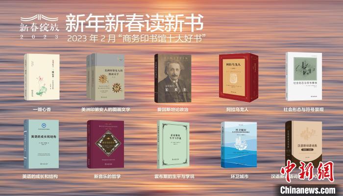 中新網(wǎng)北京2月9日電 (記者 應(yīng)妮)商務(wù)印書館“新年新春讀新書·月度新書發(fā)布會”8日晚在線舉辦,發(fā)布了2023年2月“商務(wù)印書館十大好書”,分別為《一瓣心香——葉嘉瑩詩詞論稿》《美洲印第安人的圖畫文字》《愛因斯坦論政治》《阿拉烏戈人》《社會形態(tài)與符號景觀》《英語的成長和結(jié)構(gòu)》《新音樂的哲學(xué)》《霍布斯的生平與學(xué)說》《環(huán)衛(wèi)城市——從美國殖民地時期直到現(xiàn)在》《漢語新詞語詞典(2000-2020)》。