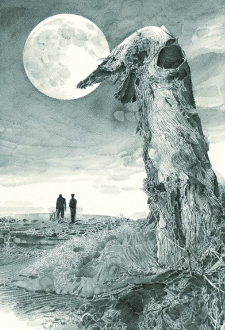 一輪滿月在大漠天空中懸浮著,兩個人行至遠方的沙地,并肩好似在暢談著什么。刊登在《讀者》2019年第五期的這幅插圖,出自魯迅美術(shù)學(xué)院教授李晨之手,他以寫實的素描手法為陳忠實的文章《毛烏素沙漠的月亮》配圖,畫面細膩而充滿想象空間。