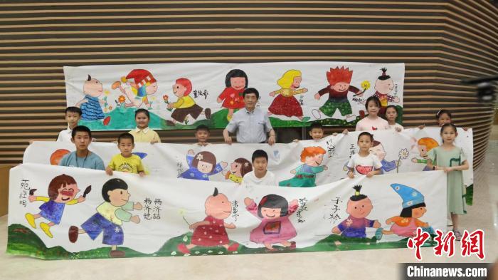 值得一提的是,講讀會(huì)上,有小小朗讀者為在場(chǎng)的觀眾聲情并茂地朗讀了《菊花娃娃》《最后一只豹子》。一場(chǎng)繪畫創(chuàng)作也在現(xiàn)場(chǎng)悄然展開,可愛的孩子們用畫筆共同創(chuàng)作了一幅長(zhǎng)達(dá)十五米的畫卷,畫出了心中最美的菊花娃娃。