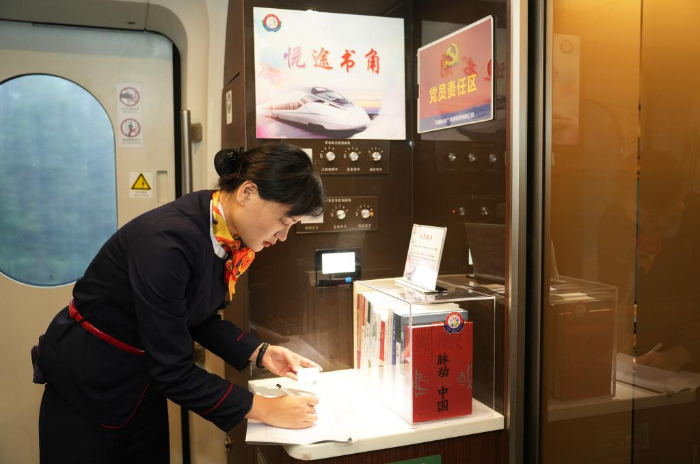 “建立讀書角,將‘全民閱讀活動’理念推進到高鐵動車組上,讓閱讀成為旅客最好的陪伴。”長沙客運段動一車隊黨總支書記王艷萍談到“悅途書角”創(chuàng)辦理念時說。