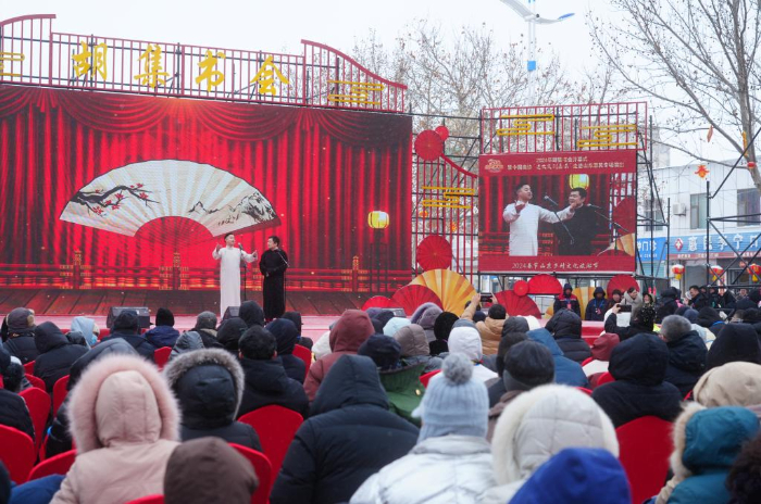 曲藝是群眾樸素真摯的生活創(chuàng)造,百余年來,人們通過曲藝記錄百態(tài)、抒發(fā)情感。站在胡集書會(huì)的舞臺(tái)前,仿佛能聽到穿越百年風(fēng)雪滄桑傳來的文化回響。(記者高天)