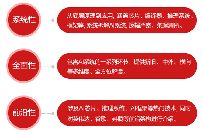 系統(tǒng)性與全棧視角。《AI系統(tǒng):原理與架構(gòu)》更側(cè)重以系統(tǒng)架構(gòu)視角看待人工智能,而不是拘泥于特定深度學(xué)習(xí)算法。本書從AI系統(tǒng)的整體概況出發(fā),分為AI硬件與體系結(jié)構(gòu)、AI編譯與計(jì)算架構(gòu)、AI推理系統(tǒng)與引擎、AI框架核心模塊四篇進(jìn)行闡述,深入探討了AI系統(tǒng)背后從底層到應(yīng)用的軟硬件全棧架構(gòu),為讀者提供了一個(gè)全面的學(xué)習(xí)路徑。