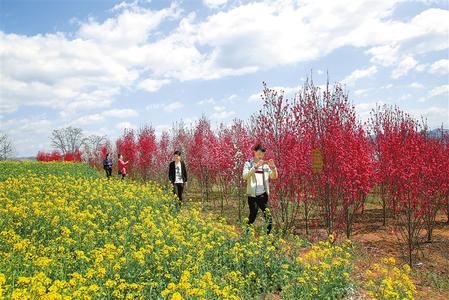 郭坪的麗桃花多為紅色,那紅,于深紅中又透著一種清麗的粉,使繁盛的花朵,飽滿中又呈現(xiàn)出一種吹彈可破的輕盈,而沁人心脾的花香,又使人忍不住就想把臉埋在繁花間,把花香全都嗅進(jìn)五臟六腑。此時(shí),花株猶如無數(shù)把紅傘,傘下,五顏六色的衣裳與花樹相映成趣。樹上的花對著人笑,地上的人對著花笑。“去年今日此門中,人面桃花相映紅。人面不知何處去,桃花依舊笑春風(fēng)。”崔護(hù)的詩也不知不覺從腦海里跳將出來。傳說詩人崔護(hù)的這首《題都城南莊》寫的是,他進(jìn)京考進(jìn)士落第,一個(gè)人悵然走到京城南郊。走得口渴到一戶人家討水,一美麗女子站在庭院的桃花下,嬌羞地把一瓢水遞給了他,那女子的美貌驚艷了詩人的眼睛。第二年春天崔護(hù)復(fù)來南莊,然而那座庭院里,桃花依然如故,而樹下卻不見了佳人的芳蹤,于是留下此詩。面對花海,也許你會(huì)突發(fā)奇想,如果崔護(hù)能在詩里復(fù)活,想必他一定也會(huì)來郭坪的麗桃花海走一遭,那么這首詩一定會(huì)是另外的意境了。因?yàn)榇藭r(shí)的花樹下,滿是顧盼生輝的佳人,也不知崔護(hù)要題詩給哪一位女子了。