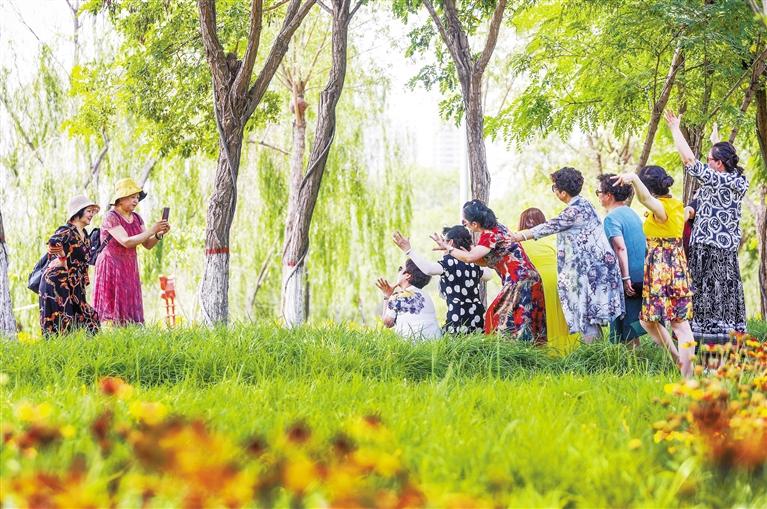 公園內(nèi)馬鞭草種植量達20多萬株,還有金雞菊、天人菊、松果菊、金娃娃萱草、月季等宿根花卉和醉蝶、波斯菊、百日草等,花卉種植面積7萬多平方米,占公園總面積的60%以上。絢麗多彩的大色塊的花景組合配以公園獨特的運動主題,呈現(xiàn)出動靜有致的濱河“花海”,深受廣大市民的喜愛,成為黃河風情線新晉網(wǎng)紅“打卡”點。