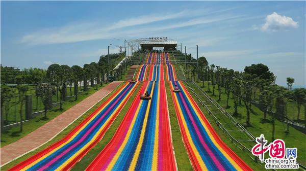 來到向家村,坐環(huán)山小火車是觀光賞景的絕佳選擇,坐上舒適的座椅,小火車便平穩(wěn)地啟動了。“前方左邊山頭就是向家村板栗園右邊則是風(fēng)光旎麗的月亮湖。”面帶微笑的導(dǎo)游向游客們介紹。一座郁郁蔥蔥的山丘,在明媚的陽光下顯得分外美麗。一陣水汽襲來,打造精美的水上樂園映入眼簾。樂園里設(shè)施齊全,既有水深0.6米的潛艇,又有0.8米高的冰山雪熊,一群小朋友在家人的陪伴下盡情戲水游樂。峰回路轉(zhuǎn),一道靚麗的“彩虹”赫然橫在路旁,這是一條長度為150米的彩虹滑道,是邵陽市目前長度最長、寬度最寬、坡度最大、游玩最刺激的一條滑道,極受小朋友喜愛和年輕人的熱捧。還有露營基地、青少年拓展中心、垂釣中心成為“驢友”的天堂。一位來這露營的朋友感嘆道:“這是一片神奇的土地,這是充滿誘惑和野趣的地方,在這里可以感悟到生命的自然和諧;通過爬山,我找回了許多久違的輕松與親切。”此外,向家村還是別具韻味的休閑雅地,這里坐落著造型古樸、飛檐翹角的華儼禪寺,擁有木質(zhì)廊柱、藤蔓茶幾、布料沙發(fā)的浪漫小屋,丹桂飄香的金玉滿堂的桂花園……真是讓人流連忘返。
