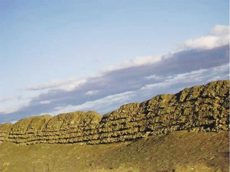 花海漢長城遺址位于玉門市花海鎮(zhèn)西泉村頭墩西側至二墩東側,西起三墩,東至花海頭墩,全長約3.5公里,長城基寬約2.4米,用沙石、紅柳分層夯筑,最高部分保存有紅柳7層,是河西走廊漢代長城遺址中保存較完好的地段之一。為有效保護漢長城花海段遺址,近年來,玉門市積極實施漢長城防護工程,對該段因長期遭受風力侵蝕,病險較為嚴重的長城本體進行了搶險加固,在花海鎮(zhèn)頭墩西側至二墩河壩間1.5公里地段內敷設了6層全封閉刺鋼絲網,并在漢長城內外兩側安裝防護欄、樹立保護標志、埋設界樁界碑,有效遏制了人為破壞,對漢長城的保護發(fā)揮了積極作用。