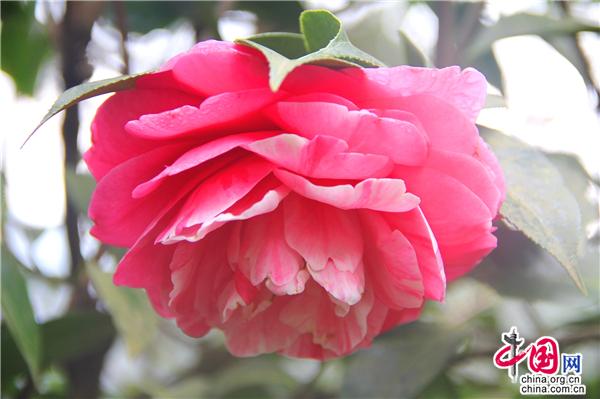 一輪艷陽照四方,一席春風(fēng)綠千山。山茶花是中國傳統(tǒng)名花,也是世界名花之一。2月21日,朋友相約,從縣城出發(fā),約8公里就進(jìn)入九龍生態(tài)園,姿態(tài)各異的山茶花已進(jìn)入盛花期,樹姿虬勁優(yōu)美,綠葉四季不凋,一朵一朵的茶花大如牡丹,燦如云霞,風(fēng)姿綽約,耀眼生輝!植株形姿優(yōu)美,葉濃綠而光澤,花形艷麗繽紛,美艷了。有的鮮紅如火、有的嬌羞染粉、有的晶瑩潔白……滿園茶花勝景。不經(jīng)意間清風(fēng)吹過,暗香徐來,朵朵花兒隨風(fēng)舞。陽光穿透葉子的縫隙,落在花間小道上,花香彌漫整個鼻腔,放低自己,品味花香,眼里有花、心里有花,人生就會像花一樣美麗。