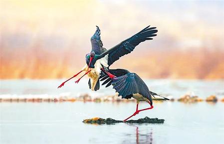 黑鸛不僅會捕魚,還是珍稀的保護動物。黑鸛有兩條大長腿,常在濕地邊緣的淺水區(qū)域活動覓食,因此是涉禽而不是游禽,有時它也到水邊的陸地上活動。黑鸛身披黑白二色,加上大紅色的眼圈、長嘴,色彩搭配既強烈又前衛(wèi)。它是我國體型最大的食魚水鳥之一,飛行遷徙能力很強,在歐、亞、非大陸都有分布,但近年來國內的種群數量下降明顯,已成為國家一級保護動物,珍稀程度可以說不亞于大熊貓。