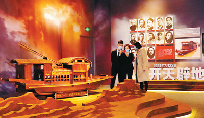 圖為觀眾在博物館參觀中共一大會址嘉興南湖紅船模型。 記者 賀勇 攝
